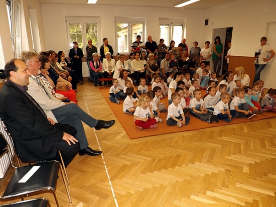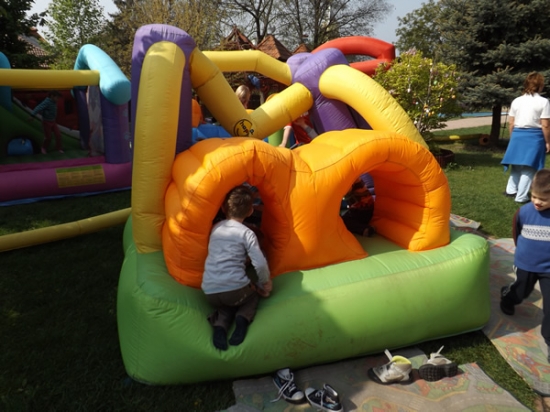 - Sajnos az időjárás nem volt hozzánk kegyes, így a tornateremben tartottuk az ünnepséget, ahol a nagycsoportosok műsora után került sor az óvodát támogató családok emléklapjának kiosztására. A szokásos medence-partyt ezúttal a csoportszobákban rendeztük meg, itt került felvágásra a nagy, 120 szeletes Kistáltos torta, amiből mindenki jót lakmározott. A napot a Kuttyomfitty Társulat Egyszer egy királyfi című műsora zárta – nyilatkozta Nagy Ágnes.