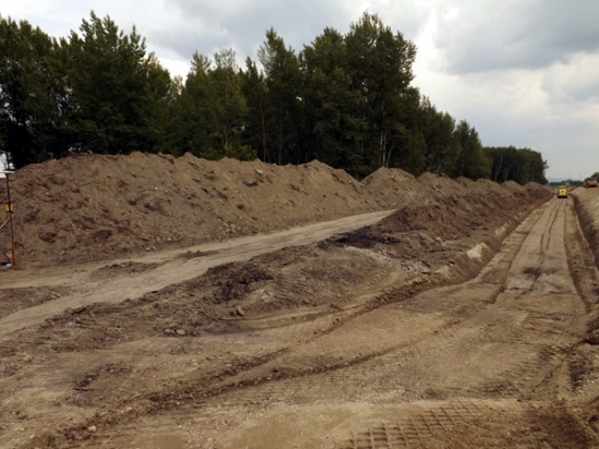 – A gát kiépítéséhez 700 ezer köbméter anyagot használunk fel, a homokos kavics Dunaalmásról a vízen keresztül érkezik, így az nem terheli meg a város útjait. A terület átadása után megkezdődtek a nem túl népszerű irtási munkálatok, a lőszermentesítési és régészeti munkák, az építés alatt végig egy régész szakfelügyelő tevékenykedik a területen, és létrehozott a kivitelező egy anyagdepót is – magyarázta Németh József.