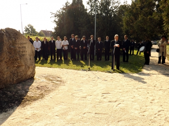 – A magyar gyönyörű nyelv. Ez a szó jelenti azt, hogy munka után merre indulok, jelenti a házat, ahol élek, s jelent valami fennköltebbet, fontosabbat is, azt a teret, ahol otthon vagyok. Az otthon jelenti a szomorúságot hallottaink miatt, jelenti a jelen melegét, a biztonságot, és a jövőt. A hazát esetünkben többféle országnak is hívhatják, egy magyar ember a történelem viharai miatt otthon érezheti magát, Csíkszeredában, Pozsonyban, Újvidéken, Munkácson, Zentán, vagy Kismartonban, Észak –Komáromban, Izsán, Gután, Vágfarkasdon, Kassán. Ott, ahol Juhász Gyula kifejezésével az „örök álmodók” élete ért véget, s hitték Széchenyivel együtt: „Nem volt, hanem lesz még Magyarország.” Ahol történelmi igazságtalanság történt, mert egy nagyhatalom - nem először - gyilkolni, példát statuálni akart – hangzott Turi Bálint beszédében.