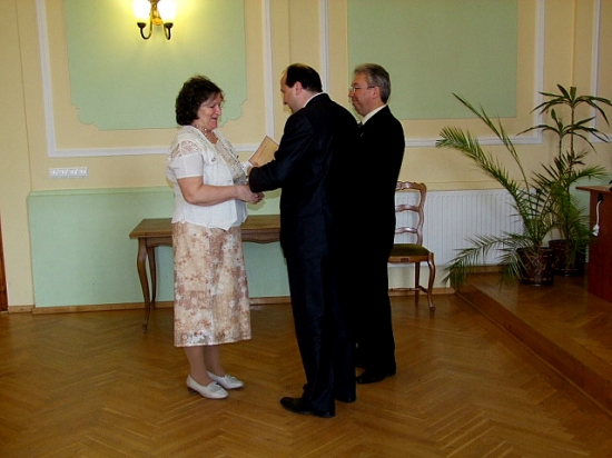 A találkozón köszöntötték azokat a nyugdíjas pedagógusokat is, akik 50, 60, illetve 65 évvel ezelőtt vették át diplomájukat. 1964-ben kezdett tanítani Balogh Lászlóné, Jenei Jánosné, Lantos István, Pőcze Lászlóné és dr. Proczeller Tamásné aranydiplomát vehettek át. 1954-től 1975-ig a Petőfi Sándor Általános Iskolában dolgozott Udvardi Lászlóné, aki tavaly kapta meg gyémánt diplomáját. Prohászka Marcell 1949-ben végezte el az egyetemet. Munkáját aktív korában több szakmai kitüntetéssel is elismerték, Komárom Város Pro Urbe-díjasa és díszpolgára lett. Vasdiplomáját az Eötvös Loránd Tudományegyetemen vehette át. Szintén vasdiplomát kapott Kissné Takács Mária is, ő azonban időközben más településre költözött. Neki két hete, költözése előtt, Turi Bálint alpolgármester nyújtotta át a vasdiplomát, valamint az önkormányzat ajándékát.