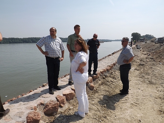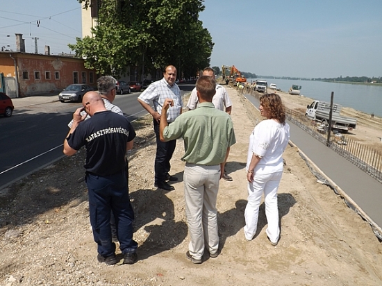 A tegnapi napon bejárást tartott az épülő gátnál Molnárné dr. Taár Izabella a járási hivatal vezetője, dr. Molnár Attila polgármester, Czita János alpolgármester, Czomba Péter a katasztrófavédelem megyei igazgatója, és Molnár András vízügyi mérnök.