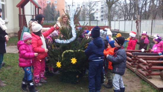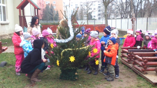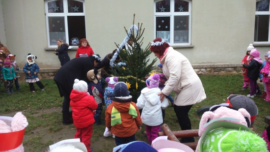 A Gesztenyés Óvoda gyermekei és az ovi dolgozói "A kis girbe-gurba fenyőfa" mese dramatizálásával és eljátszásával állították fel az intézmény karácsonyfáját az óvoda udvarán.