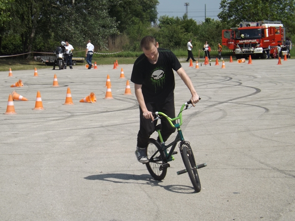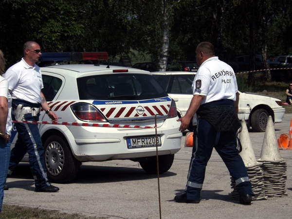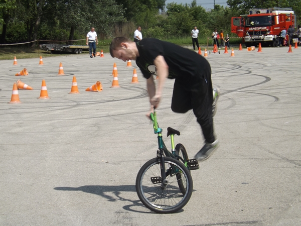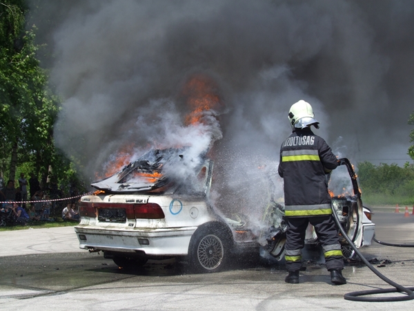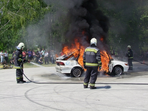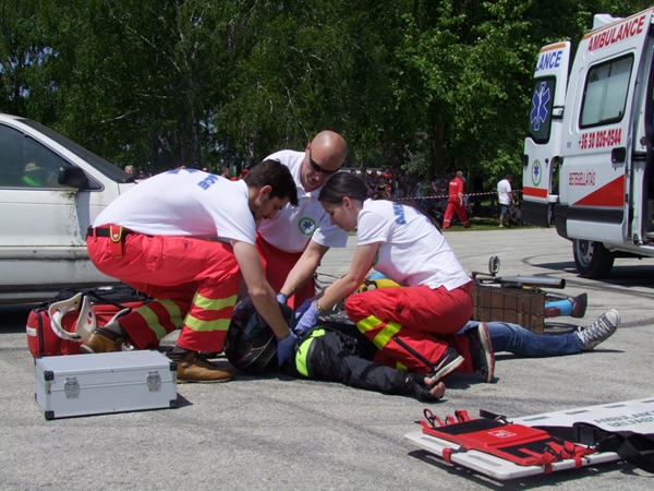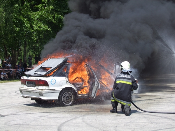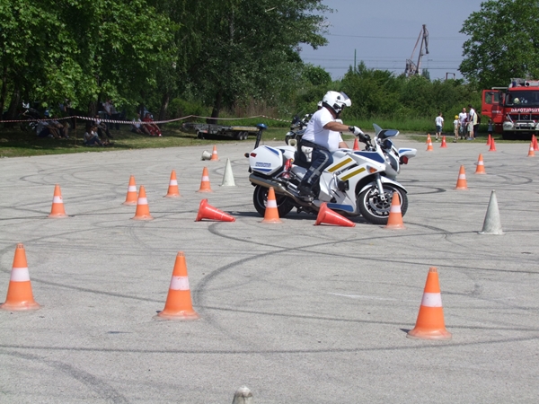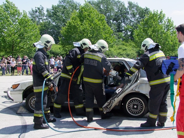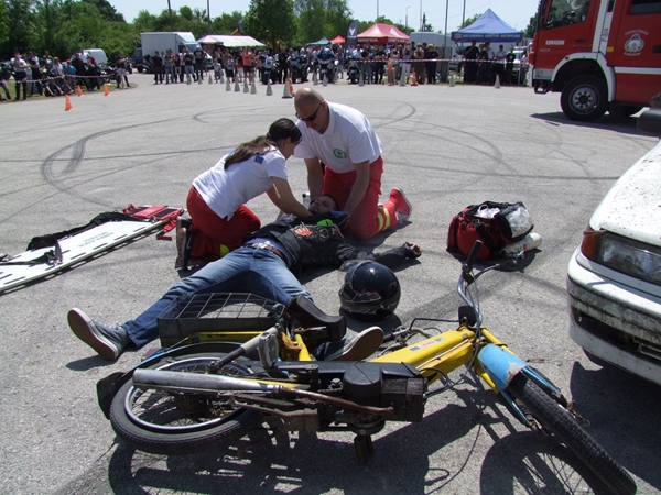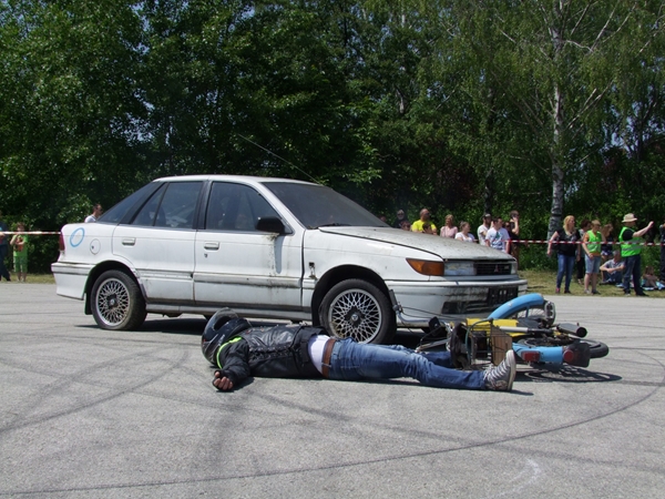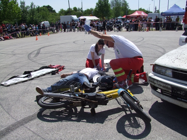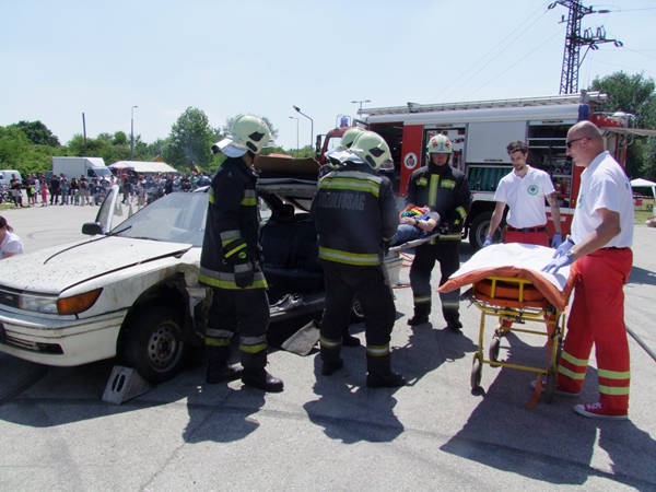 Az egész napos rendezvény leglátványosabb egyik bemutatója az a baleset szimuláció volt, melyben egy motoros és egy autós ütközött. A két sérültet a mentősök ellátták, majd a tűzoltók eloltották a kigyulladt gépjárművet.
