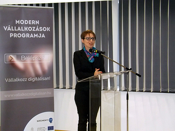 A Vállalkozz digitálisan! projekt komáromi helyszíne az Arany 17. Rendezvényközpont volt, ahol Zoltai Dániel, a Komárom-Esztergom Megyei Kereskedelmi és Iparkamara titkára köszöntötte a megjelenteket.