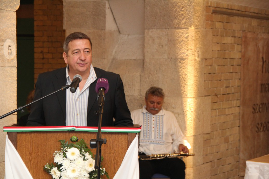Bayer Zsolt publicista arról beszélt, hogy „a huszadik század átgázolt rajtunk, magyarokon, a kitelepítettek mégsem adták fel a hitet, hogy életben kell maradni. A mostani ünnepen ne felejtsünk el emlékezni azokról sem, akiket innen zavartak el, a zsidókról és a svábokról” – mondta Bayer Zsolt.