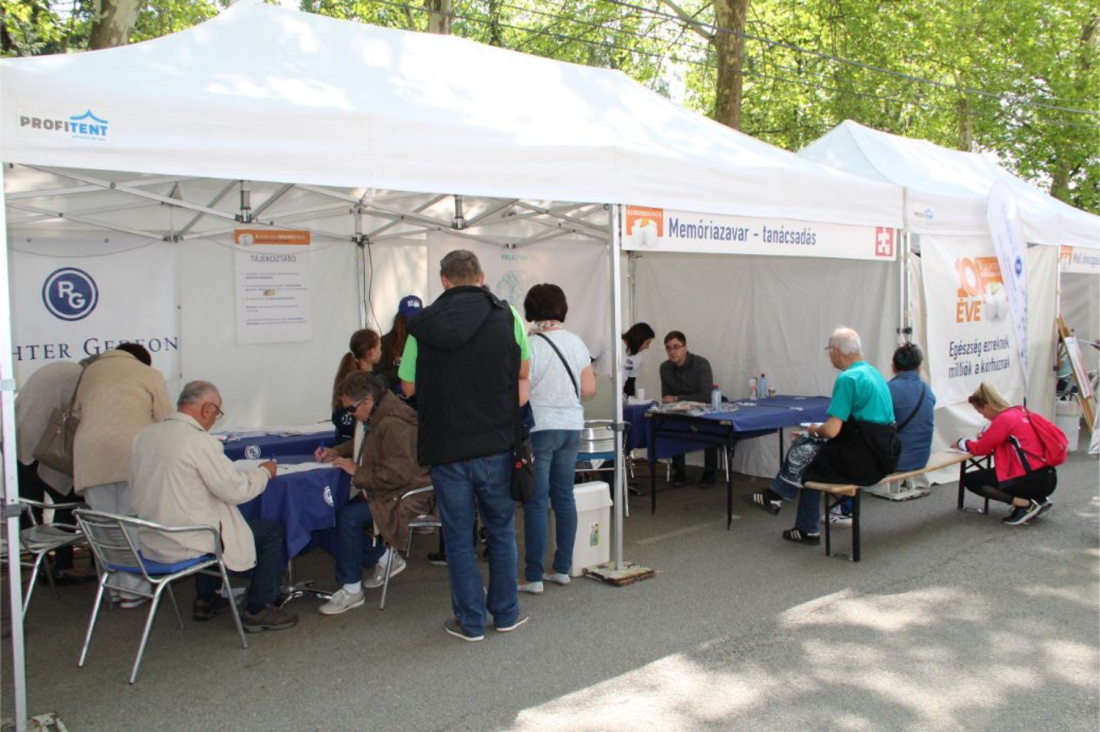 Verőfényes napsütésben vette kezdetét a Jókai ligetben megrendezett Richter Egészségváros az elmúlt hétvégén. A Richter Gedeon Nyrt. egészségtudatosságot és a betegségmegelőzést népszerűsítő országjáró szűrőprogramján, szombaton 9 és 17.00 óra között több mint 25 féle szűrésen és tanácsadáson illetve színes programon vehettek részt az ingyenes eseményre kilátogatók.