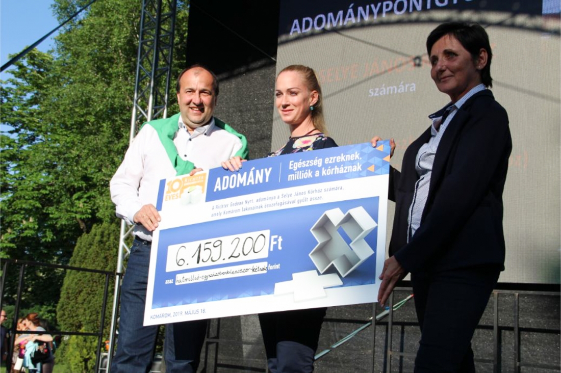 - Köszönet valamennyi komárominak! Ismét elmondhatjuk, hogy otthonunk Komárom jelesre vizsgázott összefogásból – összegezte a nap üzentét dr. Molnár Attila polgármester, aki külön kiemelte: a Richter napon összegyűlt adomány összegét az önkormányzat megduplázza, az összesen több mint 12 millió forintból számos további, a helyi betegellátás biztonságát szolgáló fejlesztést valósíthat meg a kórház!