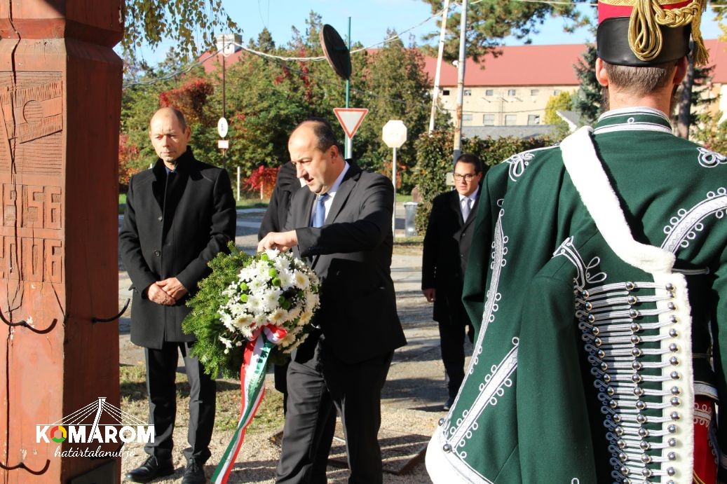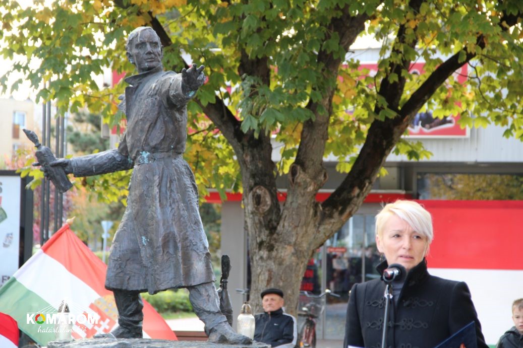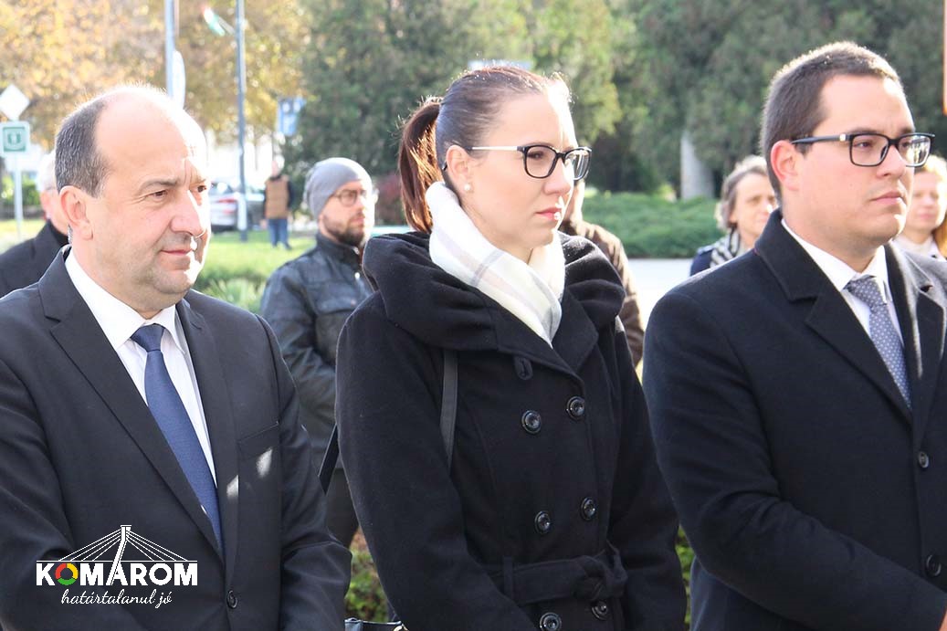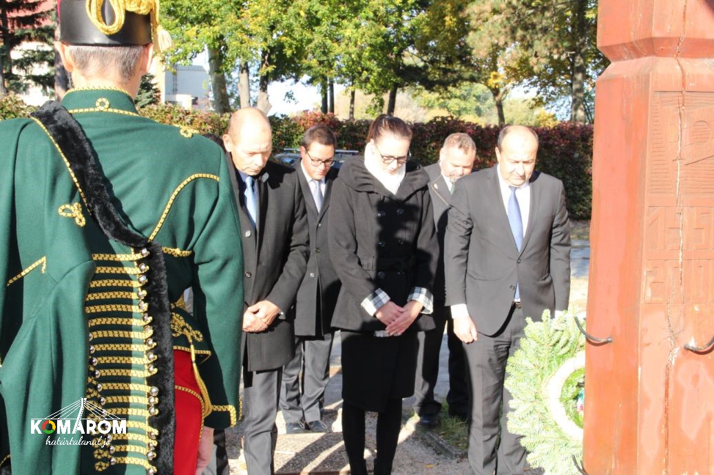 A szőnyi koszorúzást követően a városvezetés a volt lengyár terültén felállított kopjafánál helyezte el a megemlékezés virágait, majd a '56-os emlékműnél Czunyiné dr. Bertalan Judit térségünk országgyűlési képviselője mondott ünnepi beszédet.