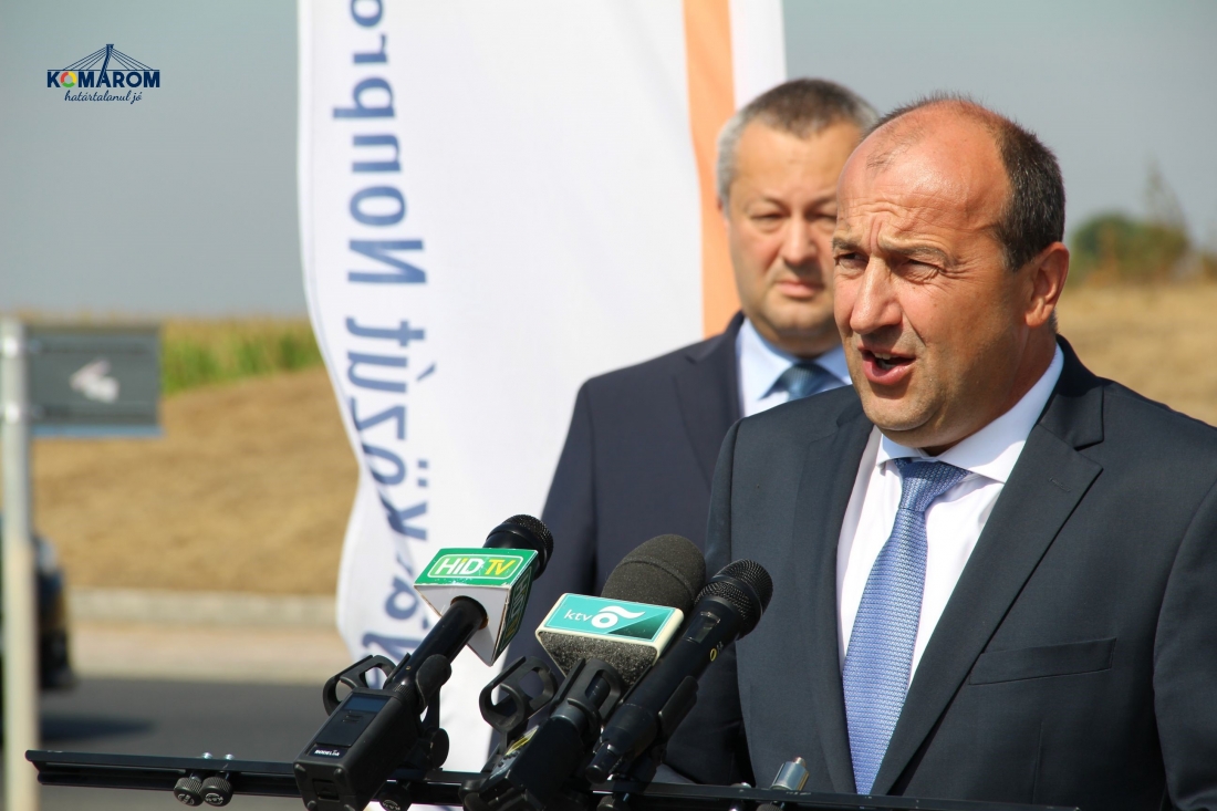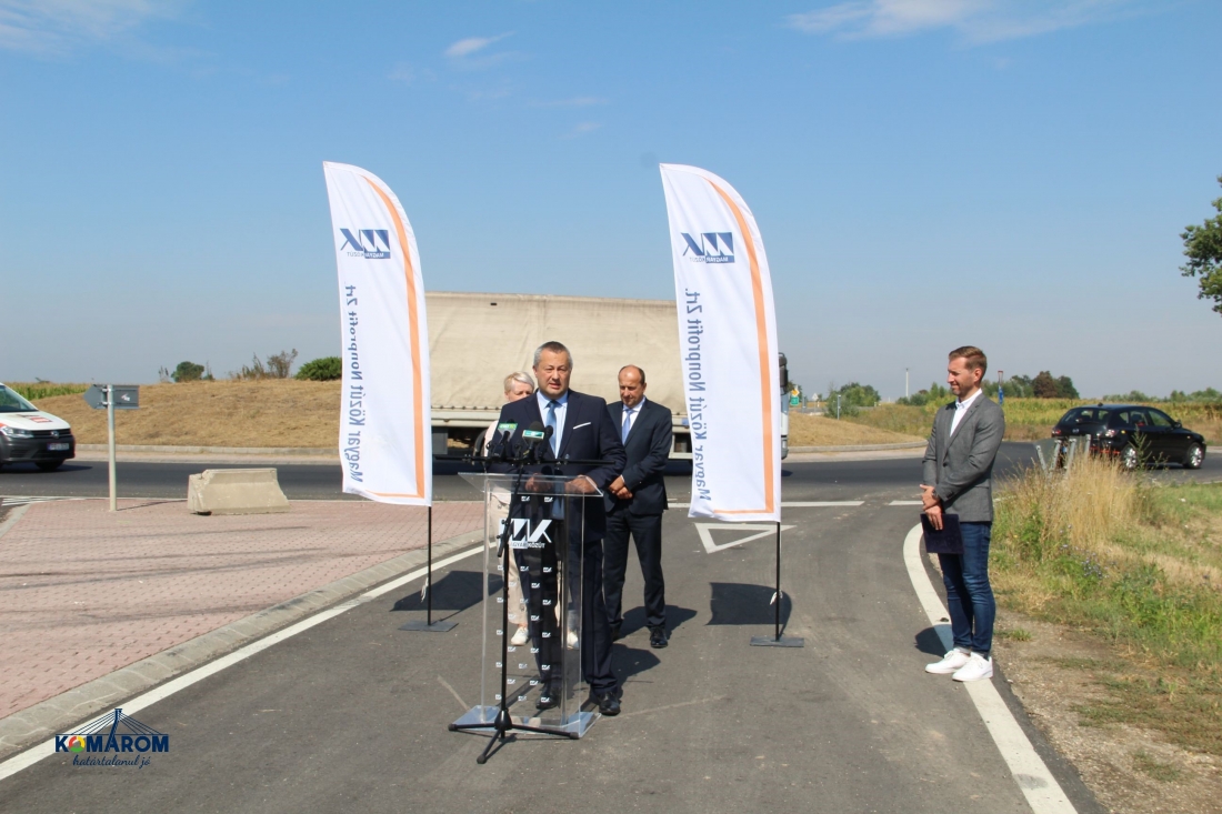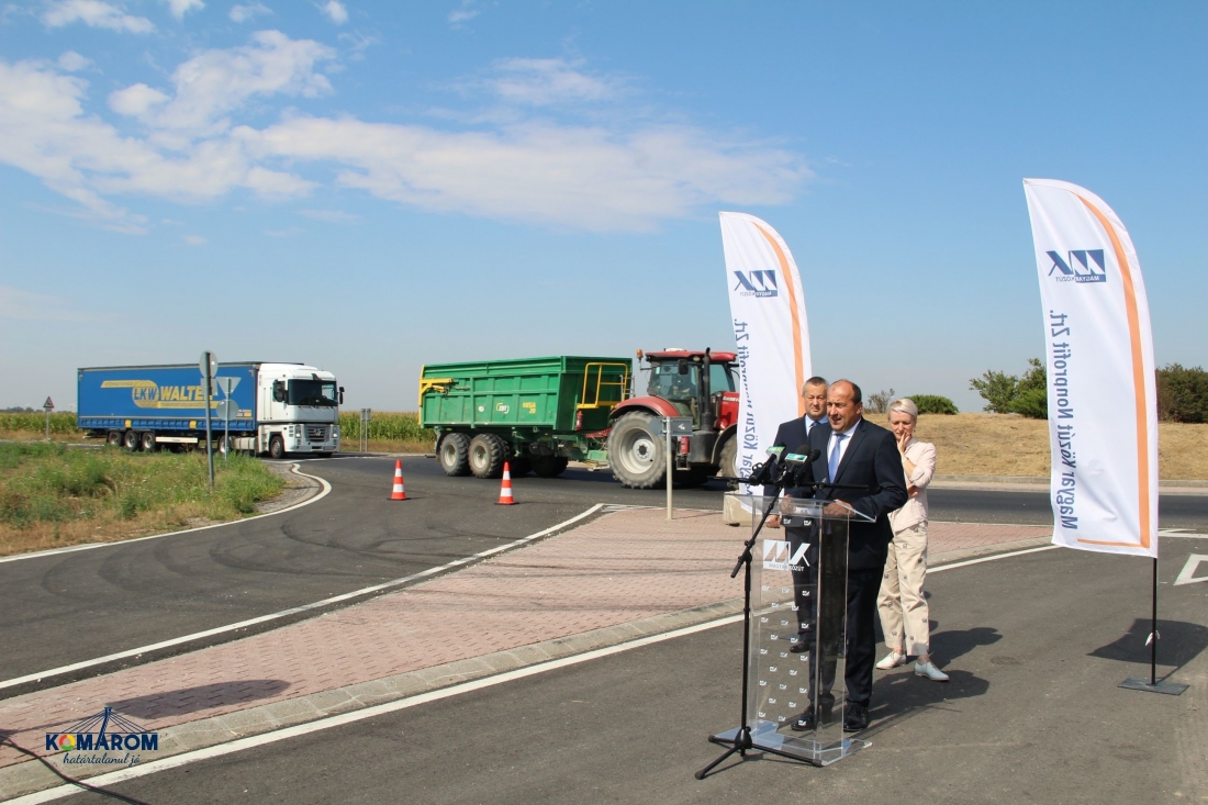 A Magyar Közút Nonprofit Zrt. ez év elején kezdte meg az érintett főút 5,5 kilométeres szakaszának felújítását a komáromi körforgalom és az M1-es autópálya között. A kizárólag hazai forrás felhasználásával, 1,4 milliárd Forintból elkészült utat július 27-e délelőtt adta át sajtótájékoztató keretében Czunyiné dr. Bertalan Judit, térségünk országgyűlési képviselője, dr. Molnár Attila polgármester és Szilvai József Attila, a Magyar Közút Nonprofit Zrt., vezérigazgatója.