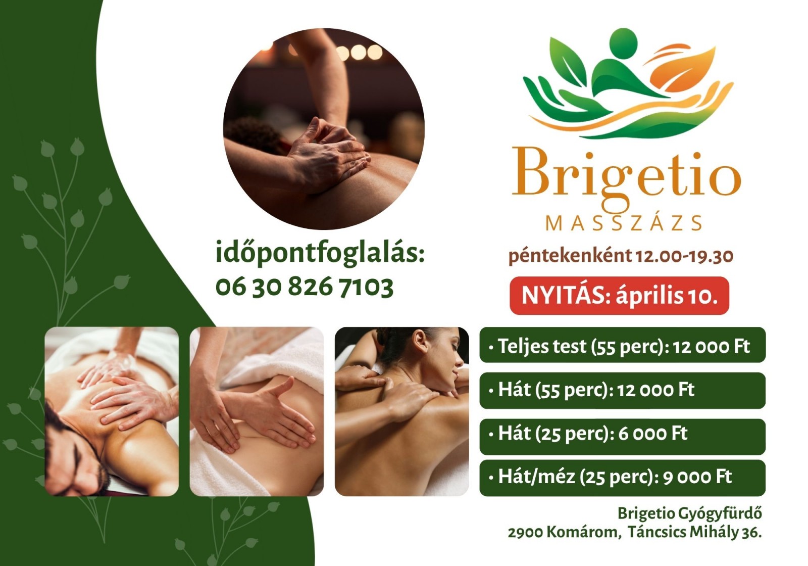 Brigetio Masszázs április 10-től